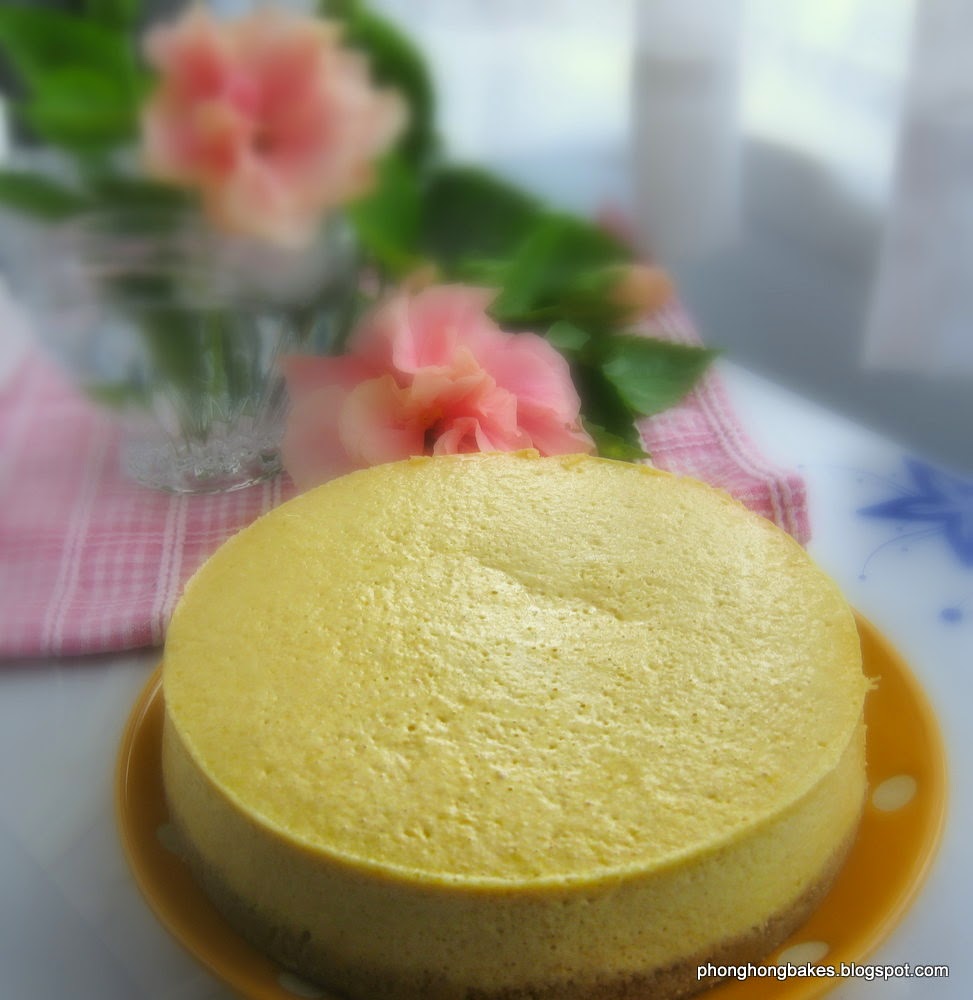 Deleteaiyoh, pumpkins again?? halloween's over lah.. or actually the pumpkin is for CNY?? i thought you should actually bake a rose cake for Valentines Day too?? hehehehe.. and surprise this pumpkin cheesecake was baked 3 weeks ago?? it still looks good as if it's just right from the oven.. so now the readers all will know that they can actually pre-bake the cakes few weeks before, and then keep them in the freezer.. and then couple of hours before the event, just take it out from the freezer and there it goes into the oven.. and then taadah!!! just tell everyone you just baked a cake (technically, you JUST BAKED on right, though you may not want to tell them it's baking a pre-baked frozen cake).. :D